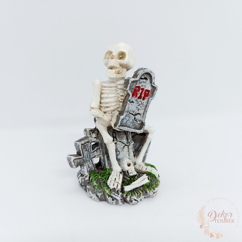 Ijesztő csontváz figura tökökkel az őszi ajtó- vagy asztaldíszekhez, vagy hangulatossá tehető vele a halloween dekoráció. A hozzá illő kiegészítőket megtalálod dekorációs kellék webáruházunkban!