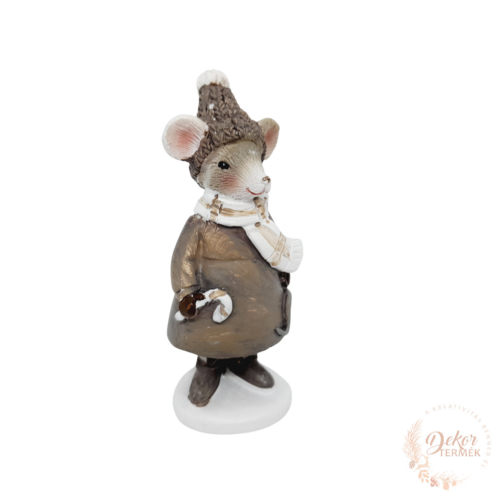 Karácsonyi egér figura a karácsonyi dekorációkhoz, asztaldíszekhez, kopogtatókhoz, adventi koszorúkhoz. Csupán ragasztópisztoly szükséges a rögzítéséhez. A karácsonyi egér figurához illő kiegészítőket megtalálja dekorációs kellékek webáruházunkban!